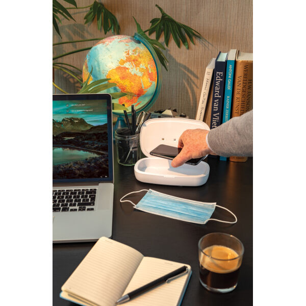 - UV-C sterilisatie box met 5W draadloze oplader