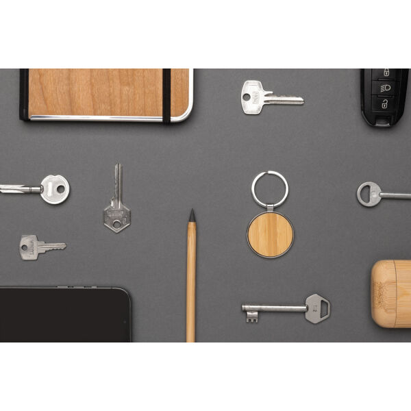 - RCS sleutelhanger van gerecyclede zinc alloy met bamboe